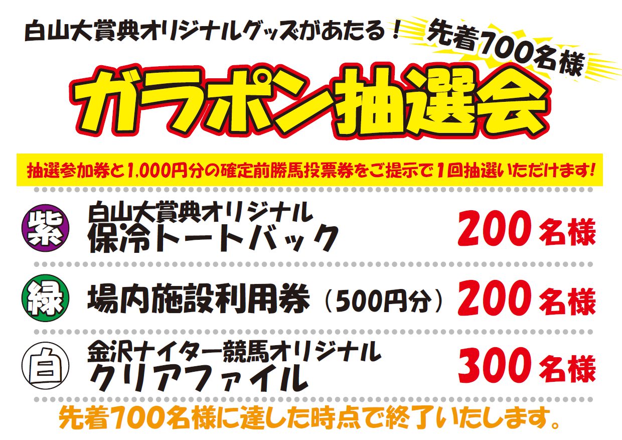 ■白山大賞典オリジナル保冷トートバックが当たるガラポン抽選会(先着700名様)